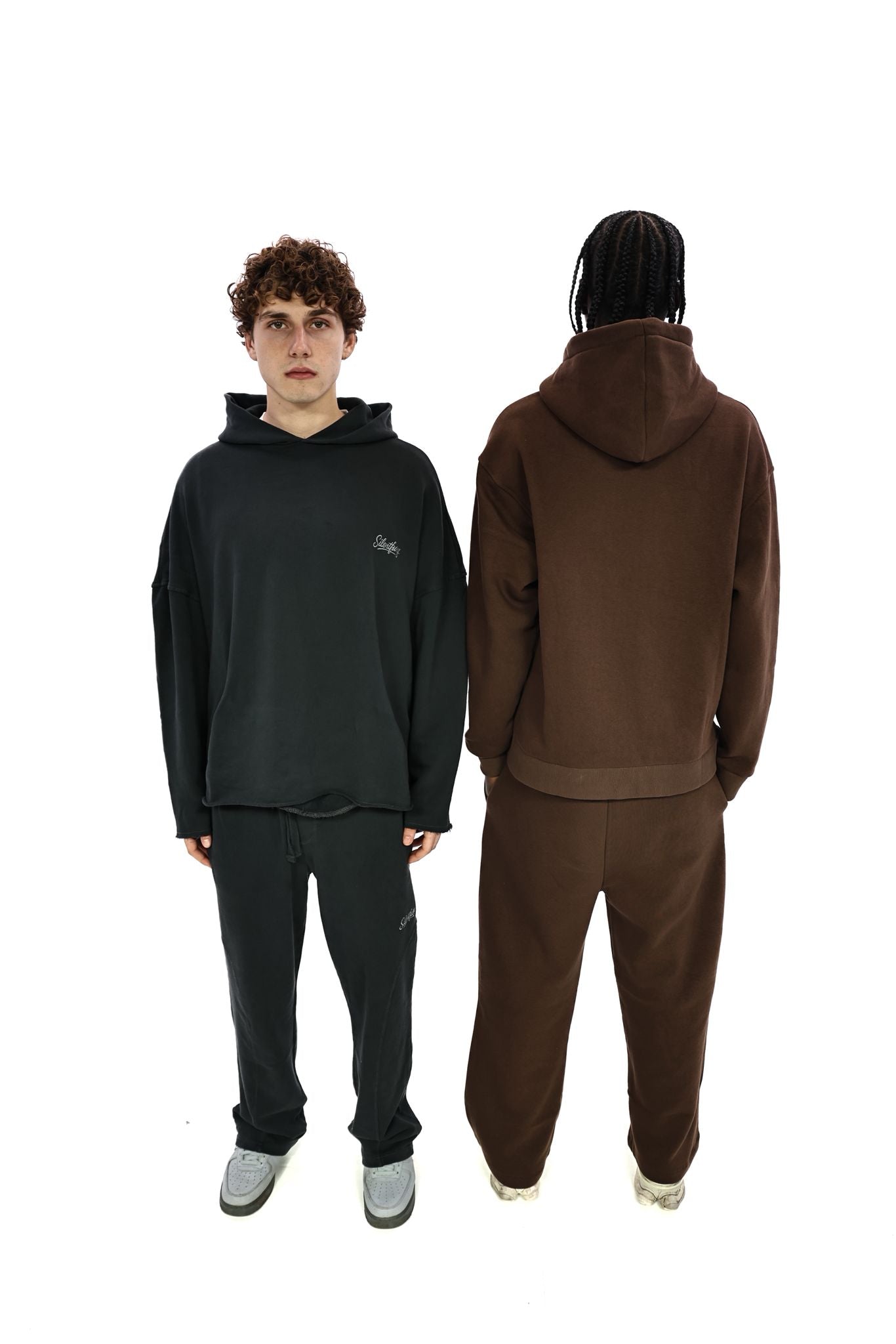 Heel setje zit hard. Hoodie valt clean broek met acid wash maakt ’m af. Kwaliteit voel je direct fit is perfect.