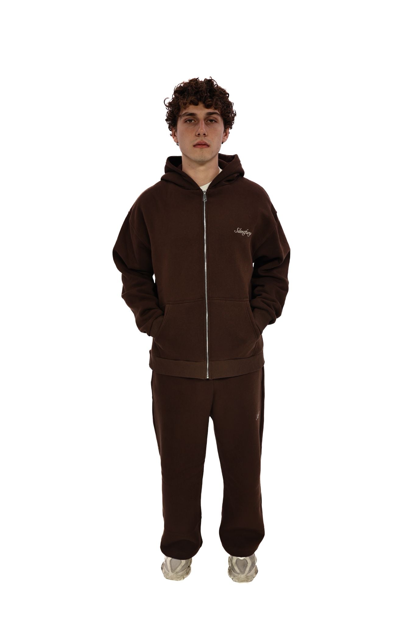 The Mocha Core Unisex Set combines comfort, structure, and subtle strength. Made from a 320 GSM 65% Cotton / 35% PES brushed cotton blend, it feels smooth and cozy while maintaining shape and all day comfort. The set includes a zip up hoodie with a hidden pocket and silver metal zipper, and rela...
